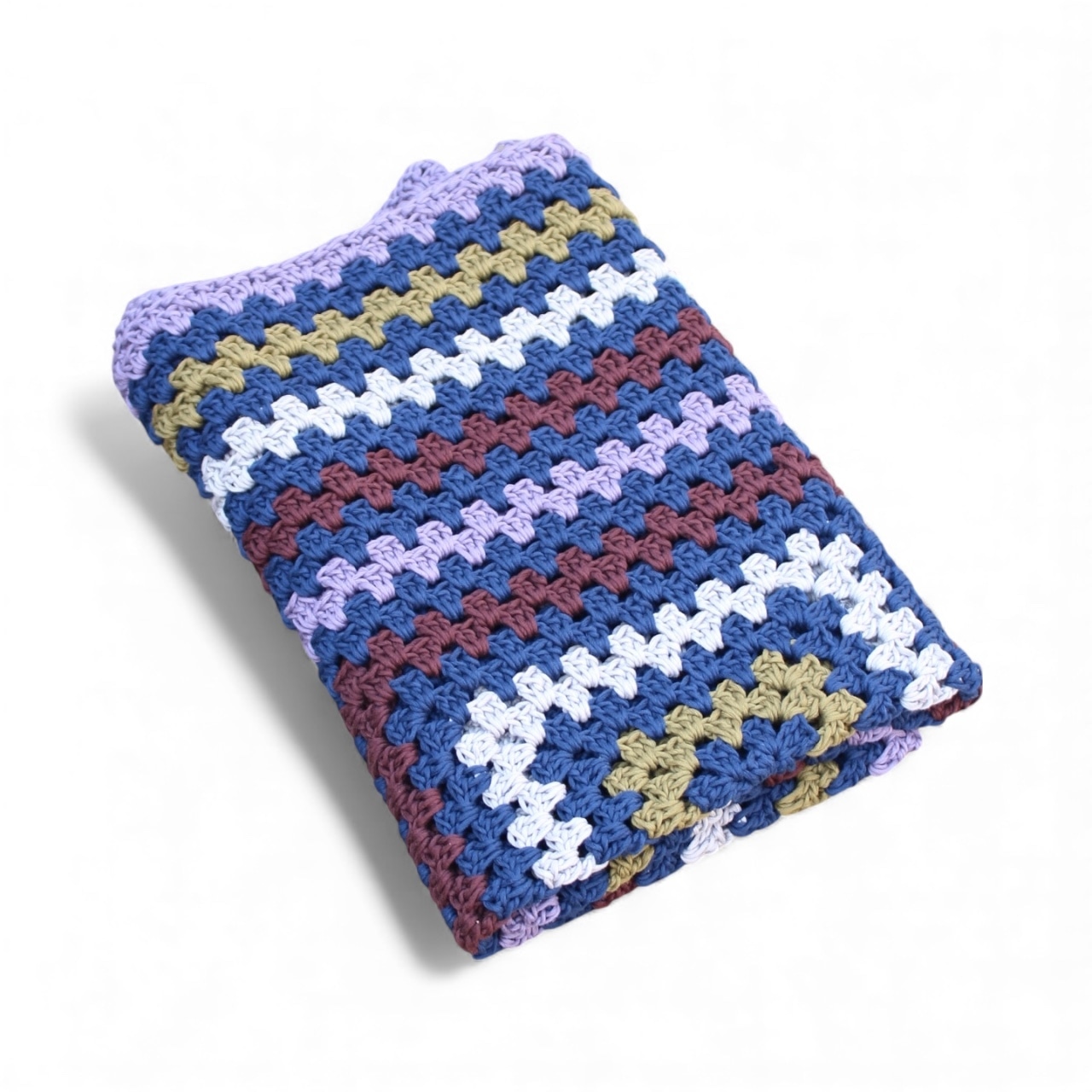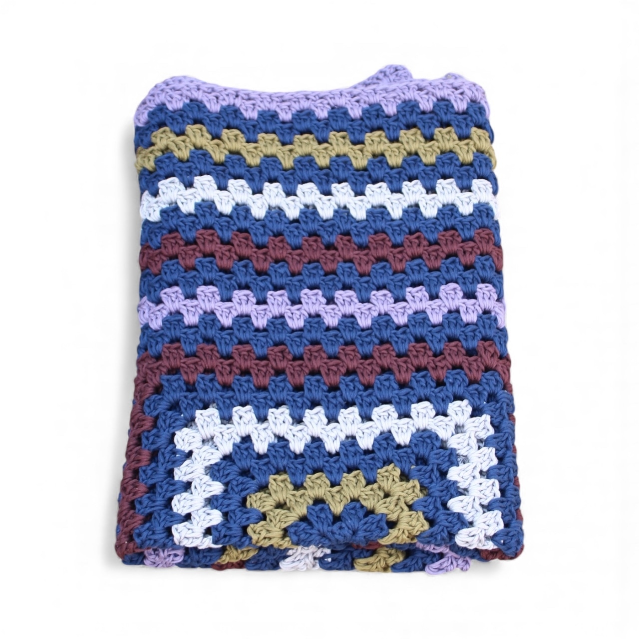 意外とアクリルが多くて、カラフルなものが多いハンドメイドブランケットですが、コットンで落ち着いた夜空のネイビーと自然界の美しいアースカラーでまとめてます!